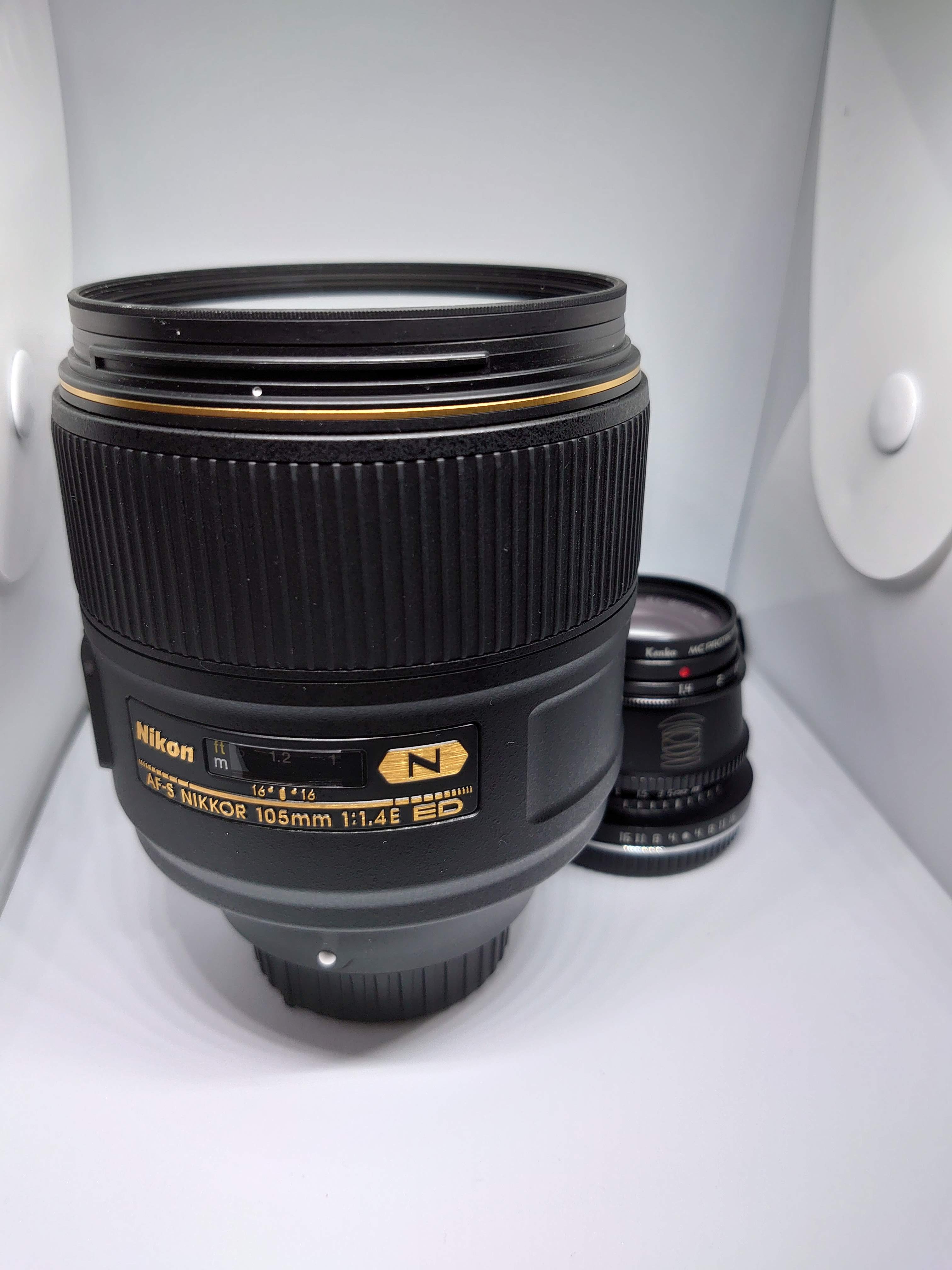 AF-S105/1.4のレンズと並べてます。